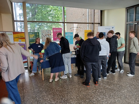 Der SKM Köln hat am 12.05.25 in zwei Pausen im Foyer der Hauptstelle zur Suchtprävention informiert. Es gab wichtige Hinweise und Materialen für Schülerinnen und Schüler, aber auch für Lehrerinnen und Lehrer zu Cannabis, Alkohol, Vapen oder Lachgas. Eingebettet war diese Aktion in die Vorstellung der neuen Plakatkampagne zur Teillegalisierung von Cannabis, die die Drogenhilfe Köln zusammen mit dem SKM Köln und dem SKF Köln initiiert hat.