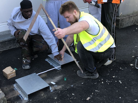 Zunächst mussten die Fahrradständer in der Werkstatt für die Montage vorbereitet werden: Die Einsteckhülsen werden gekürzt und an die Fahrradständer montiert.
